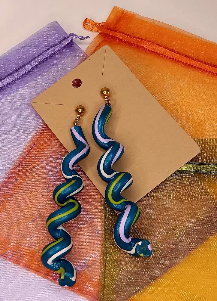 These spiral striped multicolored earrings are to serve as a reflection of how our journey is never leveled or linear, much like party streamers. So Celebrate your journey and all the twists that come with it! Available in Orange/magenta combo and Teal/ lime combo.